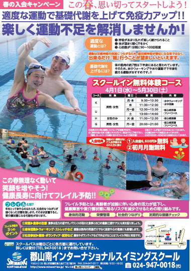 この春、お得に水泳を始められるキャンペーンになっております!!